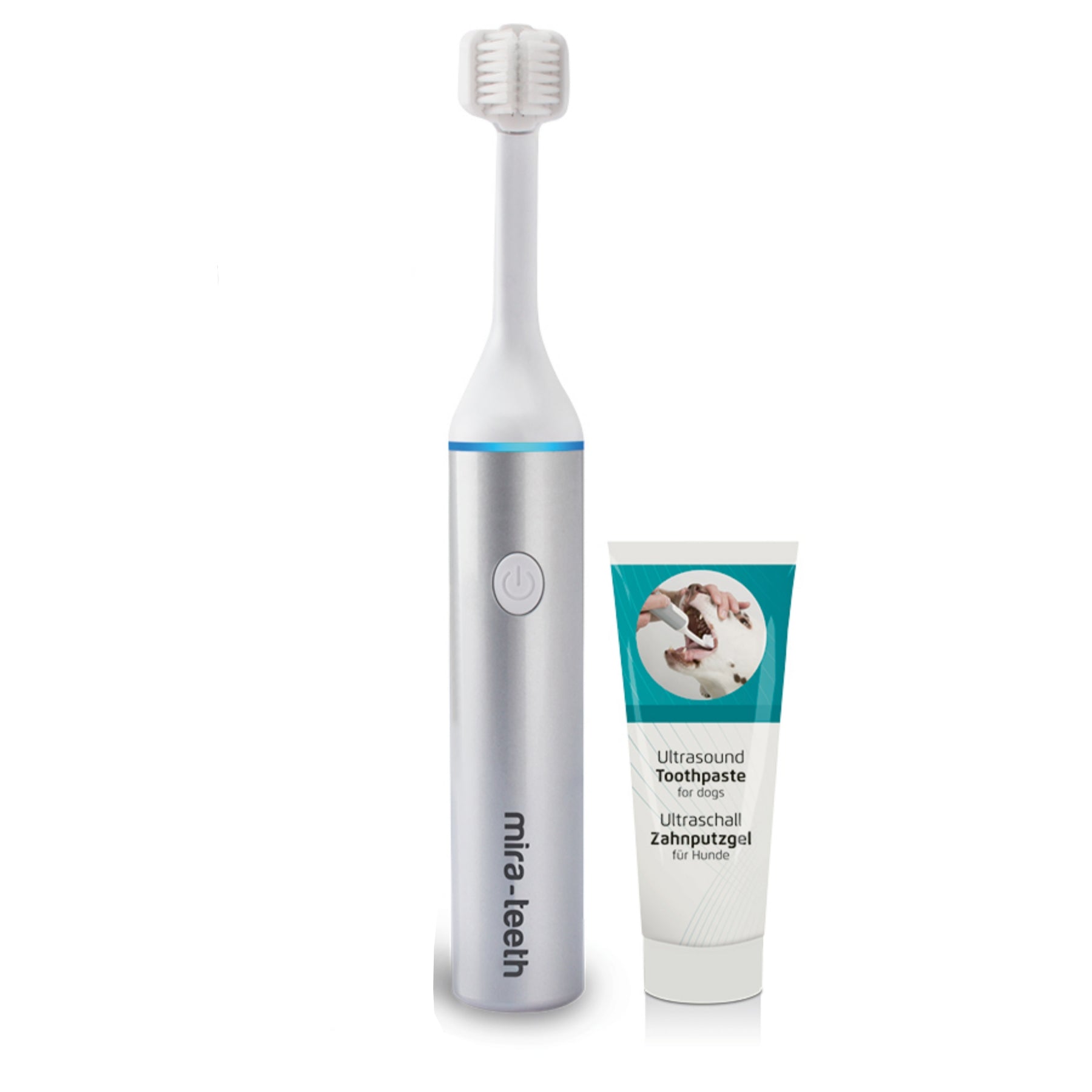 I love the Mira Pet Ultrasound toothbrush. It really works and gives me peace of mind that I can take care of my precious dog's teeth myself and also avoid costly vet bills if he had to be put under anaesthetic for teeth cleaning. My dog loves the taste of the toothpaste and therefore doesn't mind me doing it. Thanks again.